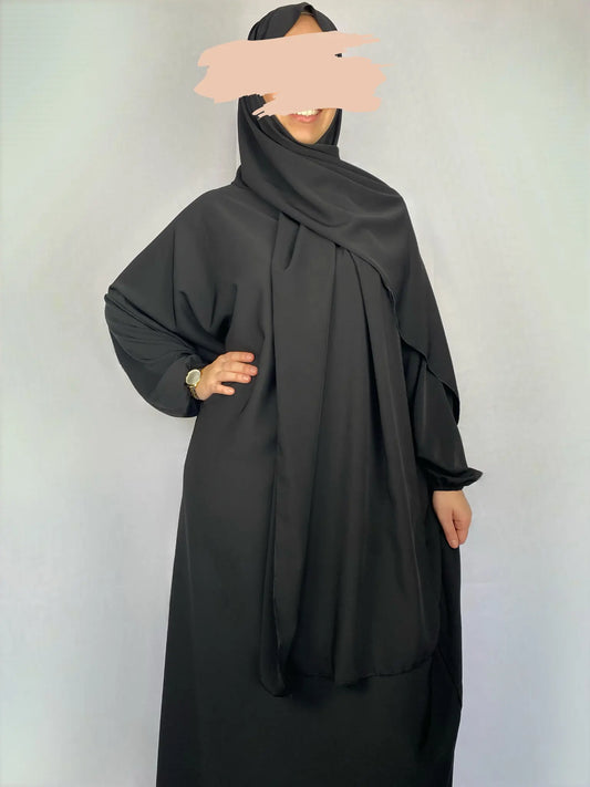 ABAYA SOIE DE MEDINE HIJAB INTEGRE NOIR