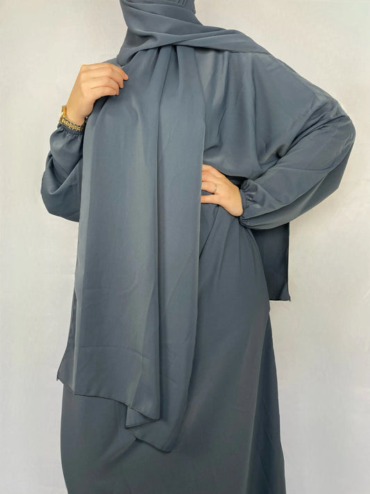 ABAYA SOIE DE MEDINE HIJAB INTEGRE GRIS