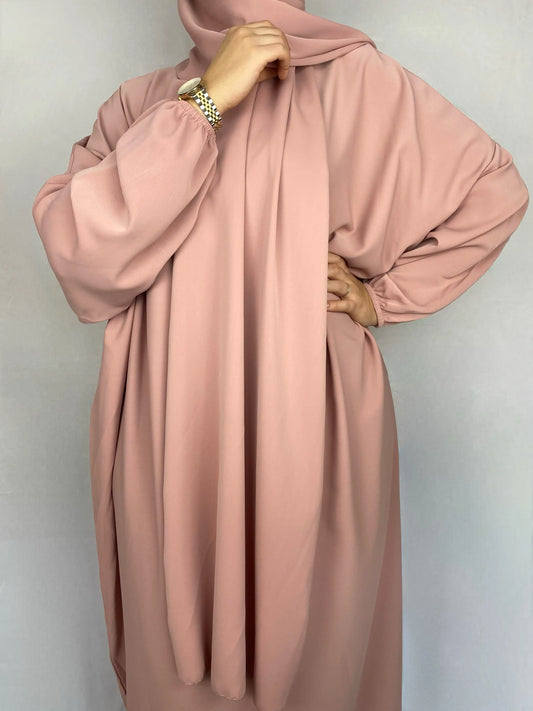 ABAYA SOIE DE MEDINE HIJAB INTEGRE ROSE