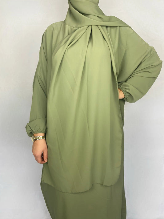 ABAYA SOIE DE MEDINE HIJAB INTEGRE VERT
