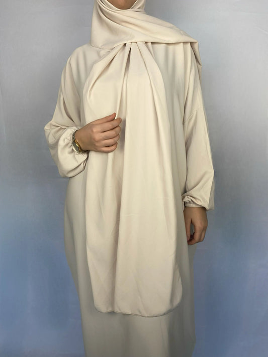 ABAYA SOIE DE MEDINE HIJAB INTEGRE BLANC CASSE