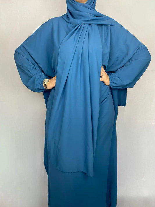 ABAYA SOIE DE MEDINE HIJAB INTEGRE BLEU